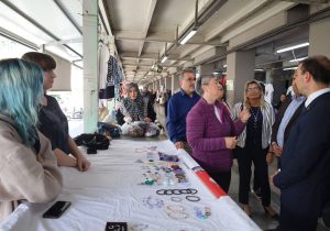 Ziyaret sırasında stant açan kadın esnaflarla bir araya gelen heyet, kadın girişimcilerin emeğine ve üretimine destek verdiklerini ifade etti.