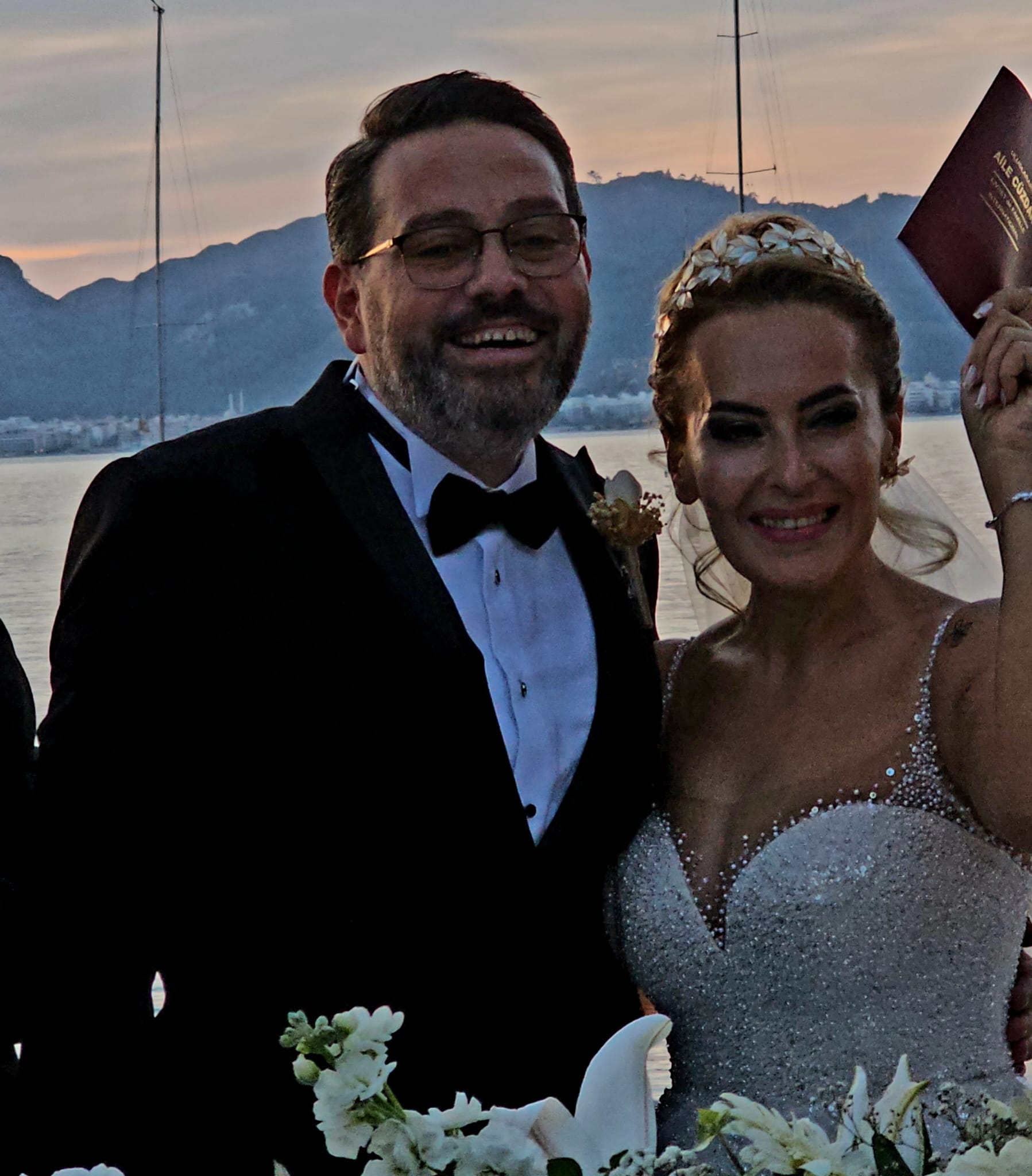 Marmaris Belediyesi Nikah Memuru Mahmut Mengili’nin kıydığı nikahta ülkenin bir çok yerinden gelen cemiyet başkanları, milletvekilleri damadın nikah şahitliğini yaptı.