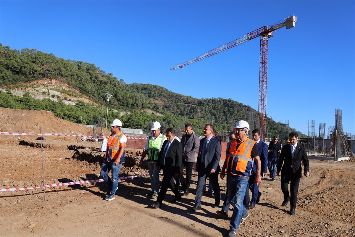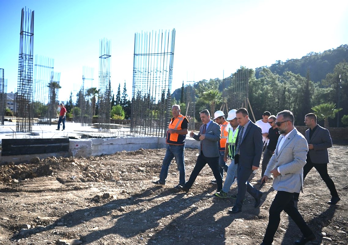 Hastanenin yanında devam eden Marmaris Gençlik Merkezi ve Spor Salonu inşaatını gezen Vali Dr. İdris Akbıyık, burada firma yetkililerinden bilgi aldı. Akbıyık,