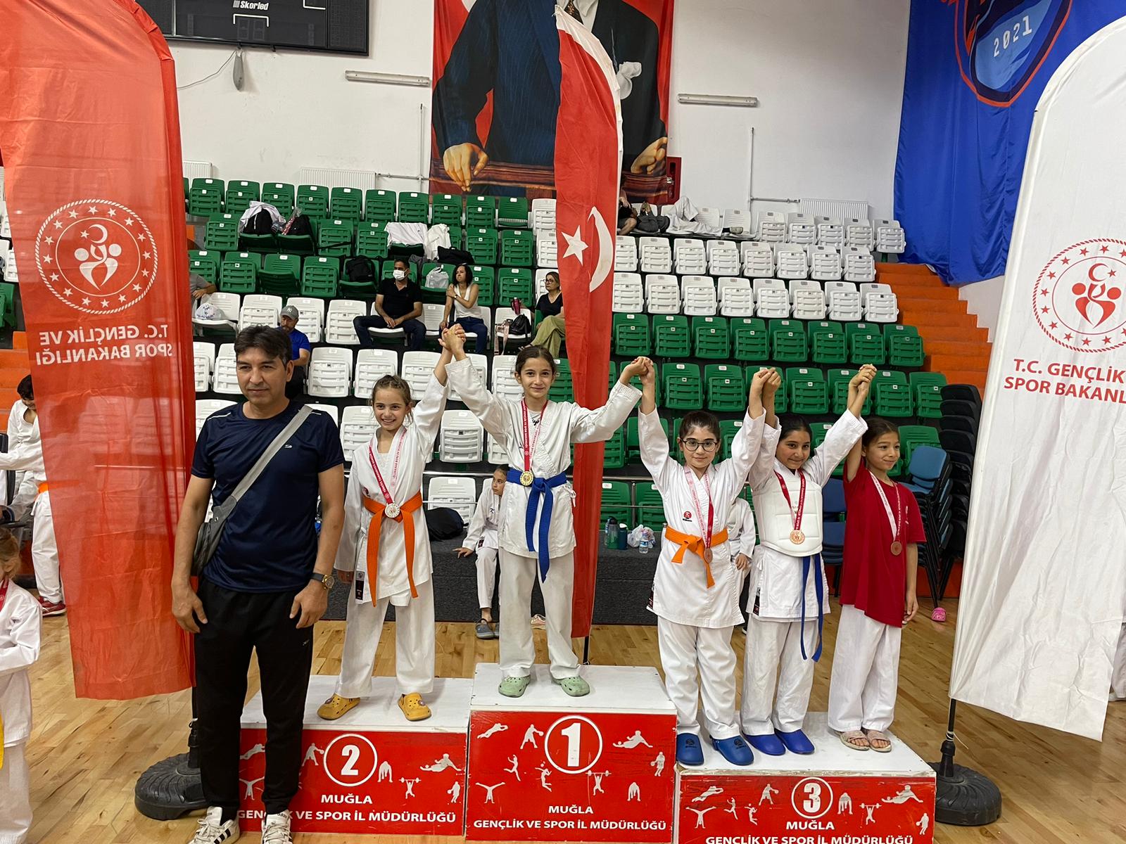 Marmaris Karate Kulübü’nden Elena Kurtulan, Ertuğrul kurtulan Beren Ketenci, Doruk Ketenci, Demir Osman Kurt, Emir Karayiğit isimli sporcular birinci olurken,
