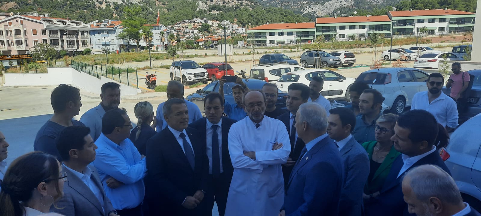 Beldibi Mahallesi’nde yapılan 200 yatak kapasitesine sahip devlet hastanesinin açılışının ilk gününde, Ak parti Muğla Milletvekili Kadem Mete, Marmaris Kaymakamı Nurullah Kaya, Marmaris Belediye Başkanı Acar Ünlü, İl Sağlık Müdürü Dr. Ali Burak Mülayim, Marmaris İlçe Sağlık Müdürü Dr. İmran İnce, Ak Parti Marmaris İlçe Başkanı Ceyhun Gökmen, MHP Marmaris İlçe Başkanı Onur Ünver, Ak Parti Marmaris İlçe Kadın Kolları Başkanı Marmaris Belediye Meclis Üyesi Cavidan Öner, Ak Parti Marmaris İlçe eski başkanlarından Osman Ülgen, Marmaris Belediyesi Meclis üyelerinden Ayşe Taşer ile Muzaffer Aravi, Ak Parti Marmaris İlçe Teşkilat Başkanı Osman Ekinci, Hastane Başhekimi Doç. Dr. Mustafa Bulut‘a hayırlı olsun ziyareti yaparak hastaneyi gezdi.
